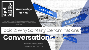 Join us in April for our next Conversations series: Why So Many Denominations?
